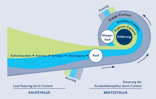 - Es geht letztendlich darum, Kunden zu gewinnen und vor allem zu binden. Im B2B-Bereich ist demnach die Generierung und Qualifizierung von Sales Leads gemeint. Also eine für beide Seiten lohnenswerte, nachhaltige Beziehung aufzubauen. Die Zielgruppen von der eigenen Kompetenz zu überzeugen, ihr Vertrauen zu erlangen und sie bei ihrer Kaufentscheidung zu unterstützen. Auch nach dem Kauf bei jedem Kontakt mit dem Unternehmen, für den Kunden durch gute Inhalte ein Erlebnis zu schaffen.