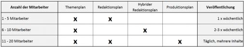 Was es nicht alles gibt und zu beachten gilt. Als da wären der Themenplan, Redaktionsplan und Produktionsplan.