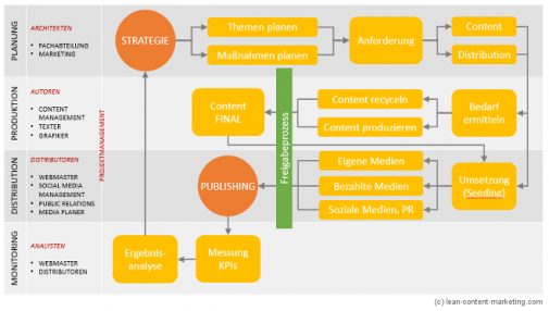 Über den Ansatz von Lean Content Marketing habe ich zuvor an anderer Stelle ausführlich geschrieben. Die gezeigte Workflow-Grafik stammt unter anderem von den beiden Autoren des gleichnamigen Werkes. Für mich eine wunderbare Chance, noch kurz und schlank auf die unterschiedlichen Rollen bei der Content-Planung einzugehen.