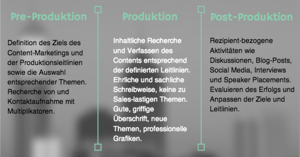 Generell lassen sich drei Content-Produktionsphasen strukturieren: