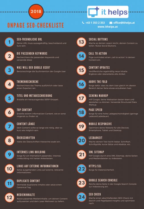 Vor allem die Content-Erstellung ist mein persönlicher Antrieb als Blogger. Einzigartigkeit übersetze ich mit schweißtreibenden Aufwand, den ich in jeden meiner Beiträge stecke. Relevanz setze ich mit Leservotum gleich. Über die anderen Maßnahmen diskutieren wir jetzt. Wer kein Bock darauf hat oder mehr wissen will, dem lege ich diese Checkliste für SEO-Praxistipps ans Herz. Eine Infografik hierzu gibt es am Ende des Beitrags.