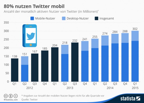 Nach Unternehmensangaben (Stand 4. Quartal 2014) sind etwa 288 Millionen User weltweit monatlich aktiv. Davon nutzen 80 Prozent das Netzwerk mobil. Laut statista ist die Anzahl im ersten Halbjahr des Jahres 2015 auf 304 Millionen Nutzer gestiegen.